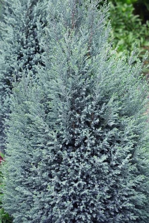 Certain to be an eye pleaser, the Blue Surprise Lawson Cypress forms an upright narrow spire of impeccable, intense steel blue foliage that will not go unnoticed in the landscape! Attractive year round, the dense foliage emerges a silvery blue transition to a darker grey blue in summer then taking on a purplish cast during the colder winter months. Adding maybe 6 inches in height per year and reaching maybe 6 to 8 feet tall and 2 to 3 feet wide at the base when all grown up, Blue Surprise is a perfect fit for smaller garden spaces or to fill a narrow spot. It puts an exclamation point on any garden or home foundation planting. Excellent in rock gardens. Groupings of three are excellent where space allows or two can be used to frame an entrance. No pruning necessary.