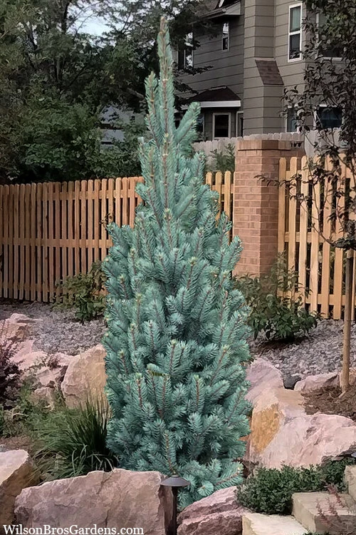 The Blue Totem Colorado Spruce is ideal as an accent tree in smaller landscape or garden spaces where height is desired but space is limited. It is also excellent for framing entryways in home foundation plantings or spaced groupings 7 feet or more apart in larger landscape and garden spaces. It is also lovely in pots, planters, and other containers for situating on or around sunny patios and other outdoor sitting and living spaces. It is a fine addition to conifer gardens, rock gardens, blue-theme gardens, Zen gardens, and the Xeriscape.