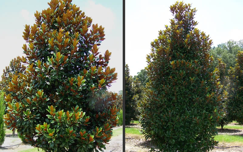 ‘D.D. Blanchard’ is a magnificent evergreen Southern Magnolia with large dark green leaves and rusty undersides on an upright, pyramidal form. It has the ability to maintain a straight central trunk that allows it to be grown full to the ground or be pruned into tree form with a visible trunk. All grown up D. D. Blanchard can reach a height of up to 75 feet tall and 30 feet wide but is usually seen at 50 feet or lower at maturity. Very large and highly fragrant cup-shaped flowers of 8 inches in diameter will fill the garden with lemony-sweet aroma during summer.