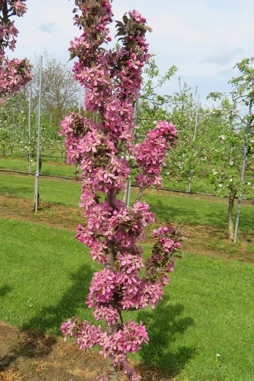 The Fruit Snacks All Red Columnar Apple grows best in moist, well-drained soil of average fertility and full to mostly sun; six or more hours daily for the heaviest flower and fruit production. Plant a different variety of apple tree for pollination. Established trees are drought-tolerant. Light shade is tolerated, but morning sun is a must.