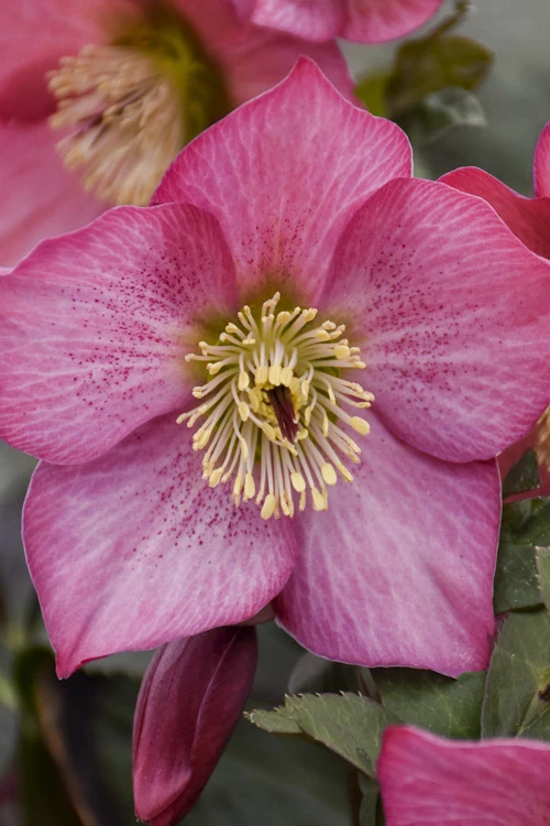 One of if not the brightest and cheery Helleborus in our gardens, Rosemary is one of those plants that will always have you looking forward to late winter. The most floriferous of Helleborus in our gardens, evening when young, Rosemary features loads of stunning, long-lasting pink flowers that emerge a lighter shade of pink transitioning to a darker rose pink color as the they age into spring. The color of these flowers make other pinks look dull in comparison, and they face outward rather than downward, which really helps to display the fresh color. Upon closer inspection, the petals display lighter pink veining and darker pink speckling and surround a prominent crown of contrasting yellow stamens. An excellent, long-lasting cut flower. As a hybrid between Helleborus niger and Helleborus hybridus, Rosemary displays incredible vigor and flower performance and is exceptionally easy to grow and long-lived in USDA Zones 4a-9b. Forming an attractive evergreen clump 18 to 24 inches tall in flower and equally as wide, this is a perfect plant in the ground or containers under large trees, decks and other shady areas.Â