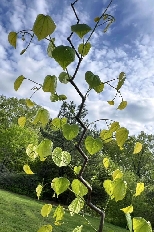 A new twist, or should we say “zig zag,” on our magnificent North American native Rredbud tree, Zig Zag is sure to be a captivating conversation piece in the landscape. Though all redbuds have a zig-zag pattern on their newest stems, the Zig Zag Redbud takes the pattern to a new level with a zig-zagging trunk and all the branches! Redbuds are known as “harbingers of spring” for their early spring bloom, and Zog Zag is no different. The branches and stems are smothered in clusters of pea-like, vibrant fuschia flowers in late winter to early spring. Immediately after flowering, its beautiful, heart-shaped, bright green leaves emerge to warm your heart. The leaves mature to darker green by summer, turning to golden-yellow in fall before dropping to let the zig-zag branches take the stage for winter. Exceptionally easy to grow and low maintenance, Zig Zag might reach 20 feet tall and 25 feet wide at maturity and grows well in the sun or part shade.