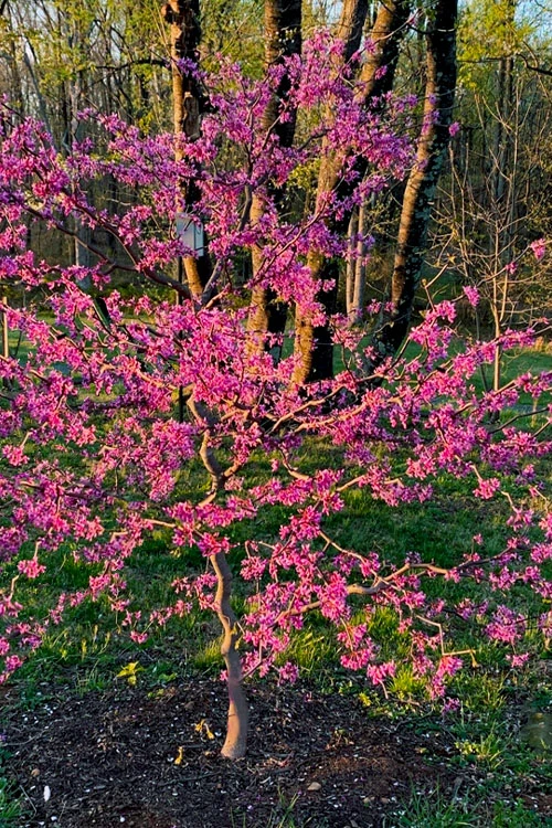Growing upright with an irregular rounded form 20 feet tall and 25 feet wide, the Zig Zag Redbud is an ideal focal point specimen in sunny to partially shaded landscape and woodland borders. It is also lovely to frame the corners of tall homes and provide interest, beauty, and shade around patios, porches, and other outdoor sitting and living spaces. It is a fine addition to purple theme gardens, native gardens, woodland gardens, and cottage gardens.